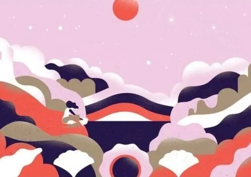 An abstract landscape that the viewer can look at for many minutes and continue to find something new. Some images may be immediately identifyable, others intentionally take a minute to see. The underwater scene will be less colorful and more monochromatic to support a calm soothing environment.