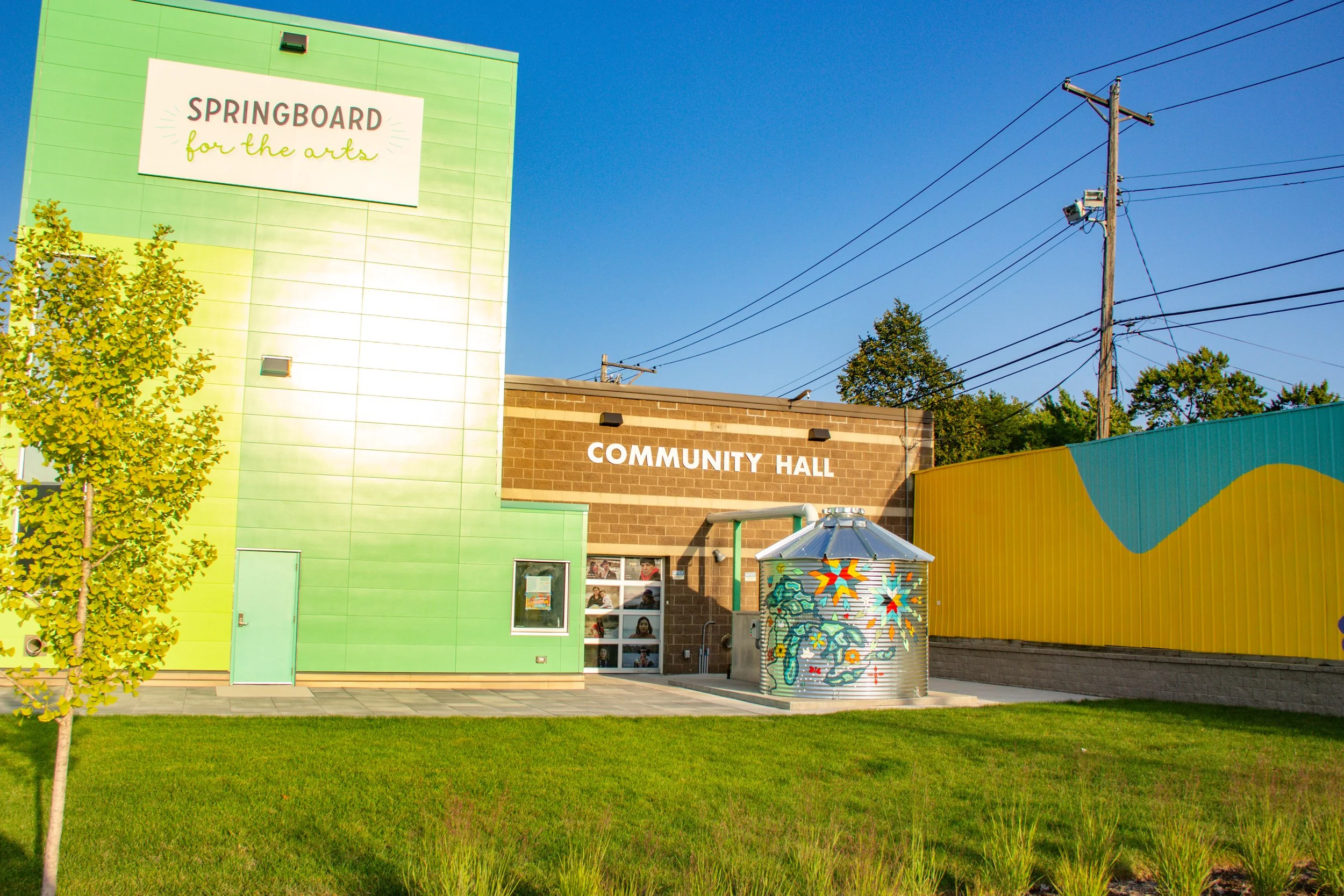 The Brief: Create a mural for Springboard’s new location in St. Paul, MN. The mural will highlight Springboard’s sustainable rainwater collecting efforts. The mural also beautifies a space for community to gather which represents and pays respect to the first peoples of Minnesota, the Dakota and Ojibwe nations.